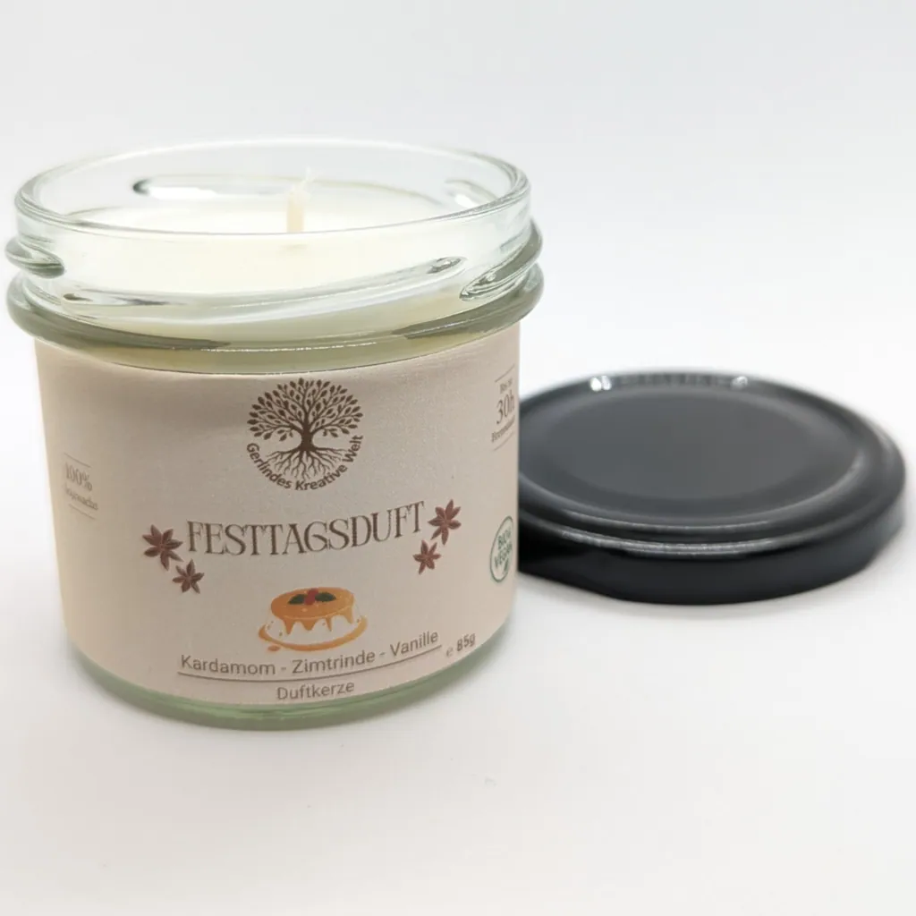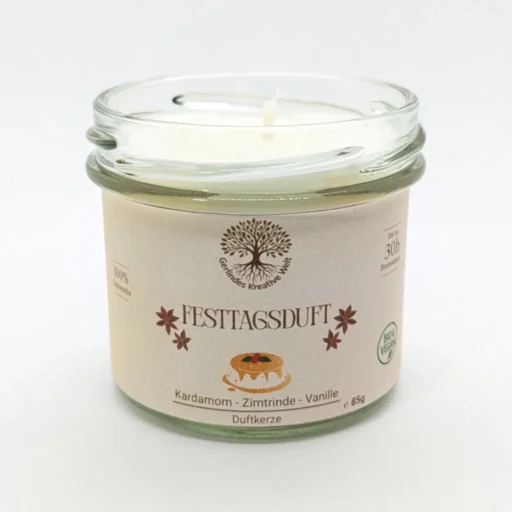 Die kalte Jahreszeit bringt Wärme ins Herz: Kerzenschein, festlich gedeckter Tisch und der Duft von süßen Gewürzen. Die Festtagsduft Duftkerze erinnert an traditionelle Weihnachtsleckereien – reichhaltig, würzig und wohlig süß.