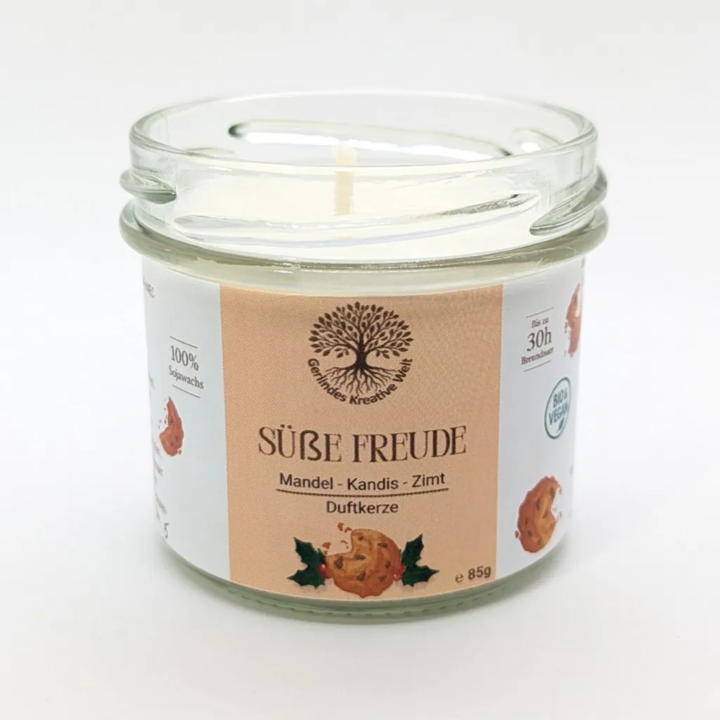 Weihnachten ist die Zeit der süßen Versuchungen: frisch gebackene Kekse, Vanillezucker und ein Hauch von Karamell. Die Süße Freude Duftkerze fängt genau dieses Gefühl ein – wie ein Teller voller Weihnachtskekse, der Wärme und Geborgenheit ins Zuhause bringt.