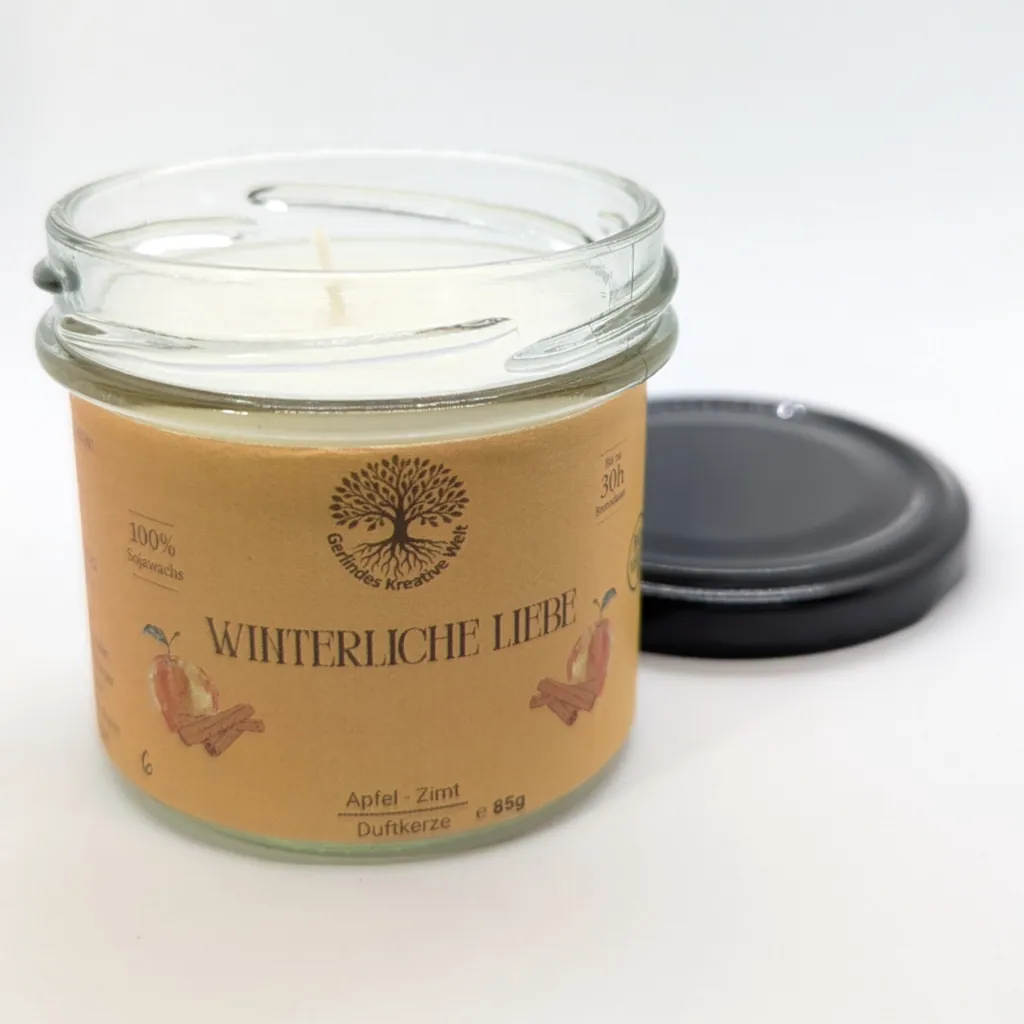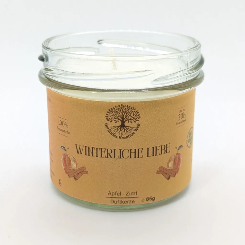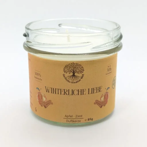 Die Winterliche Liebe Duftkerze vereint die fruchtige Süße von Äpfeln mit der würzigen Wärme von Zimt und schenkt deinem Zuhause eine Atmosphäre voller Geborgenheit und festlicher Freude.