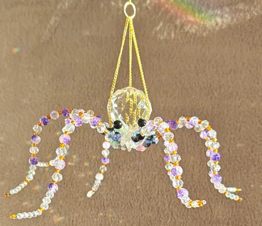 Oktopur – handgefertigte Perlen‑Spinne mit Kristallkörper in wunderschönen Lila‑ und Orangetönen. Funkelt im Sonnenlicht, bringt Regenbogenreflexe in den Raum und ist ein einzigartiges Deko‑Highligh. Perfekt als Geschenk oder für alle, die besondere Handmade‑Stücke lieben.